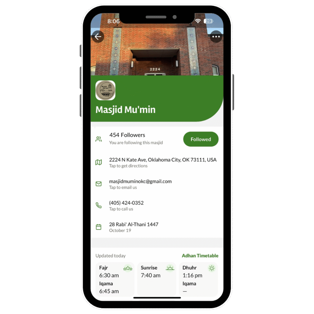 Masjid Mu’min Address: 2224 N Kate Ave, Oklahoma City, OK 73111, USAPhone: (405) 424-0352Email: masjidmuminokc@gmail.com Download Our App